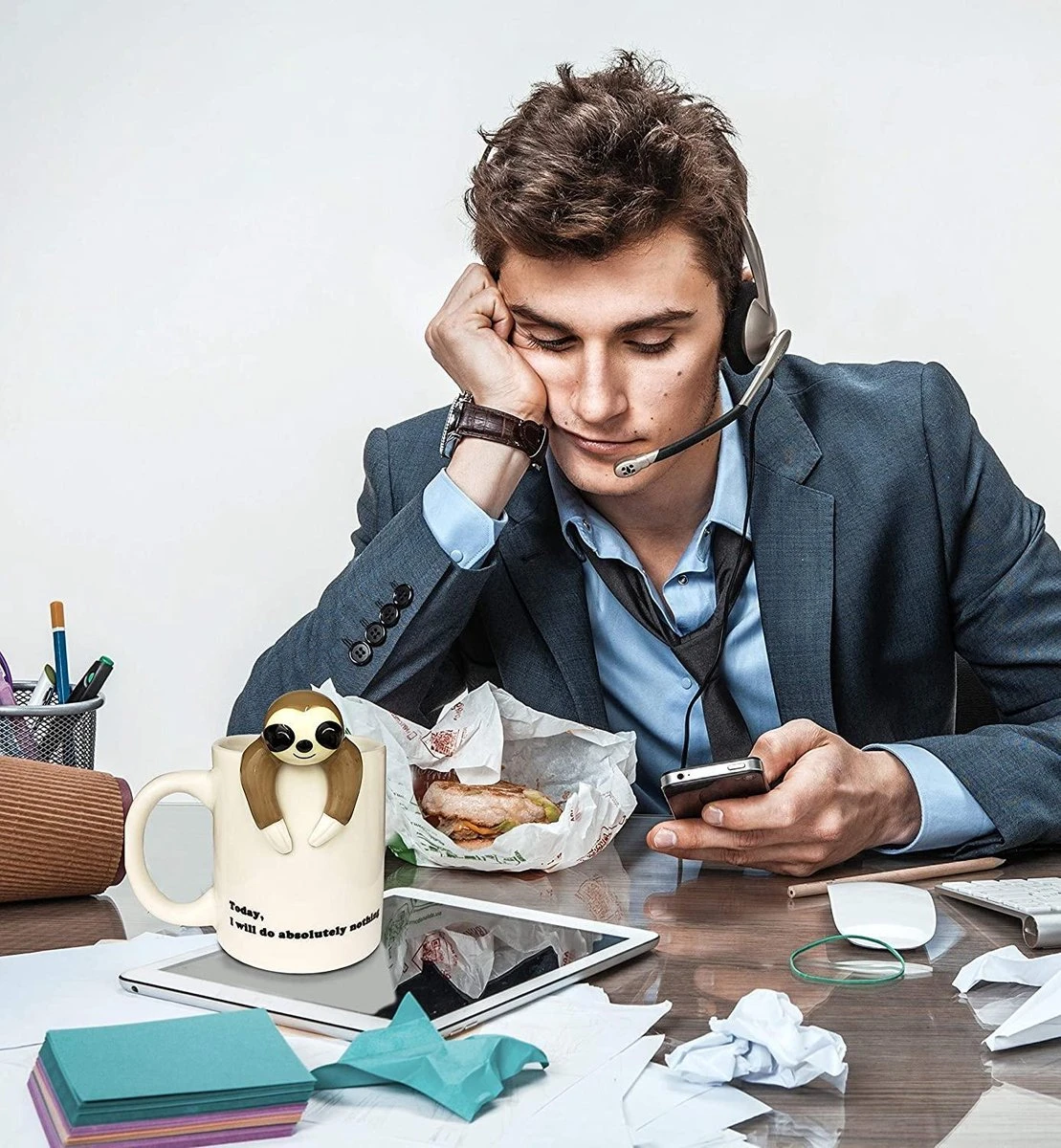 Decodyne Luiaard Luie Grappige Koffiemok, Grappige Cadeaus Voor Vrouwen En Mannen 35 Cl