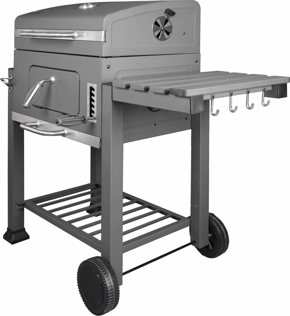 Dankzij de wielen aan de voorzijde is de barbecue ook eenvoudig te verplaatsen!