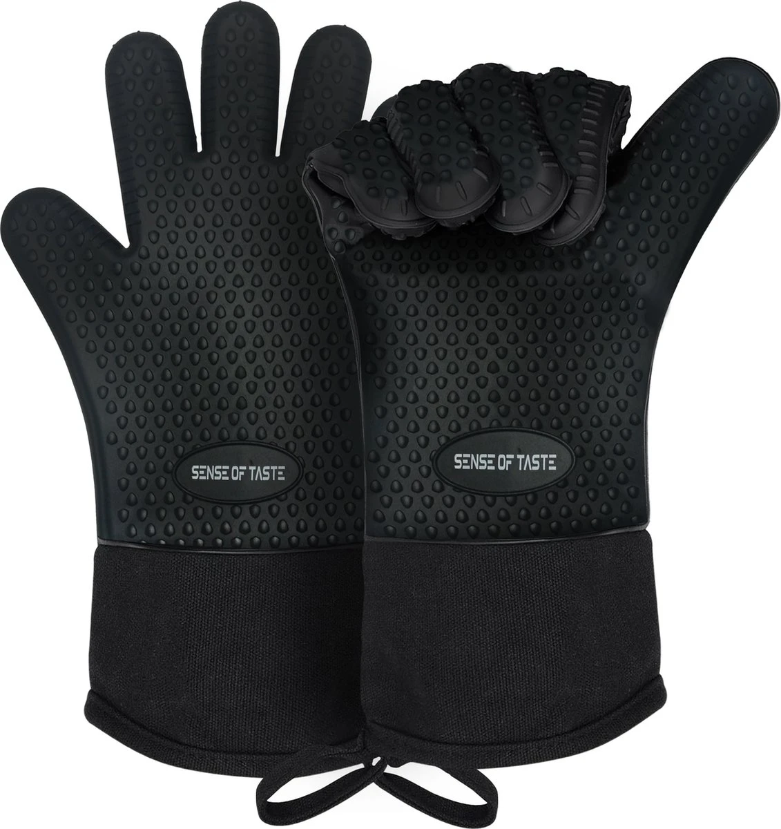 Sense Of Taste Ovenwanten – 2 Stuks – Ovenhandschoenen – Hittebestendig – 230°C – Siliconen – Zwart – Koken – Extra Lang